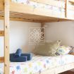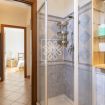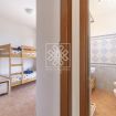 Salendo al piano superiore, si trova un bagno elegante e raffinato con doccia, ideale per rinfrescarsi e rigenerarsi dopo una giornata di avventure. La camera da letto principale offre ampi spazi e comfort, con un grande letto matrimoniale e arredi accoglienti. Accanto, una cameretta accogliente e colorata è perfetta per ospitare i più piccoli, con un pratico letto a castello e un delizioso balconcino che offre una vista pittoresca sul giardino sottostante.