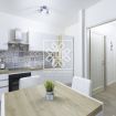 La cucina, dal design contemporaneo, è completamente attrezzata e include lavastoviglie, rendendo ogni soggiorno ancora più confortevole. La connessione Wi-Fi veloce garantisce la massima comodità per chi lavora o desidera restare sempre connesso.