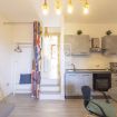 Dopo una giornata di sole e mare, una doccia esterna ti attende per rinfrescarti e goderti la sensazione di libertà. Entrando, la cucina moderna ti sorprende con il suo design elegante e gli elettrodomestici all'avanguardia, incluso un piano cottura a induzione per preparare i piatti più gustosi. Il divano letto nel soggiorno offre un luogo accogliente per rilassarsi e guardare un film dopo una giornata di divertimento.